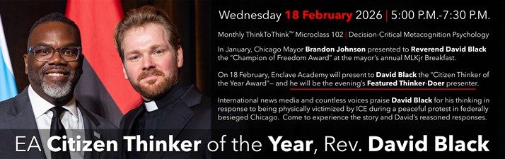 On 18 February, Enclave Academy will present to David Black the "Citizen Thinker of the Year Award" — and he will be the evening's Featured Thinker-Doer presenter.