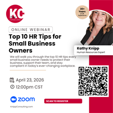 In this practical and engaging training, HR expert Kathy Knipp will walk you through the top 10 HR tips every small business owner needs to protect their business, support their team, and stay compliant in today’s ever-changing workplace.